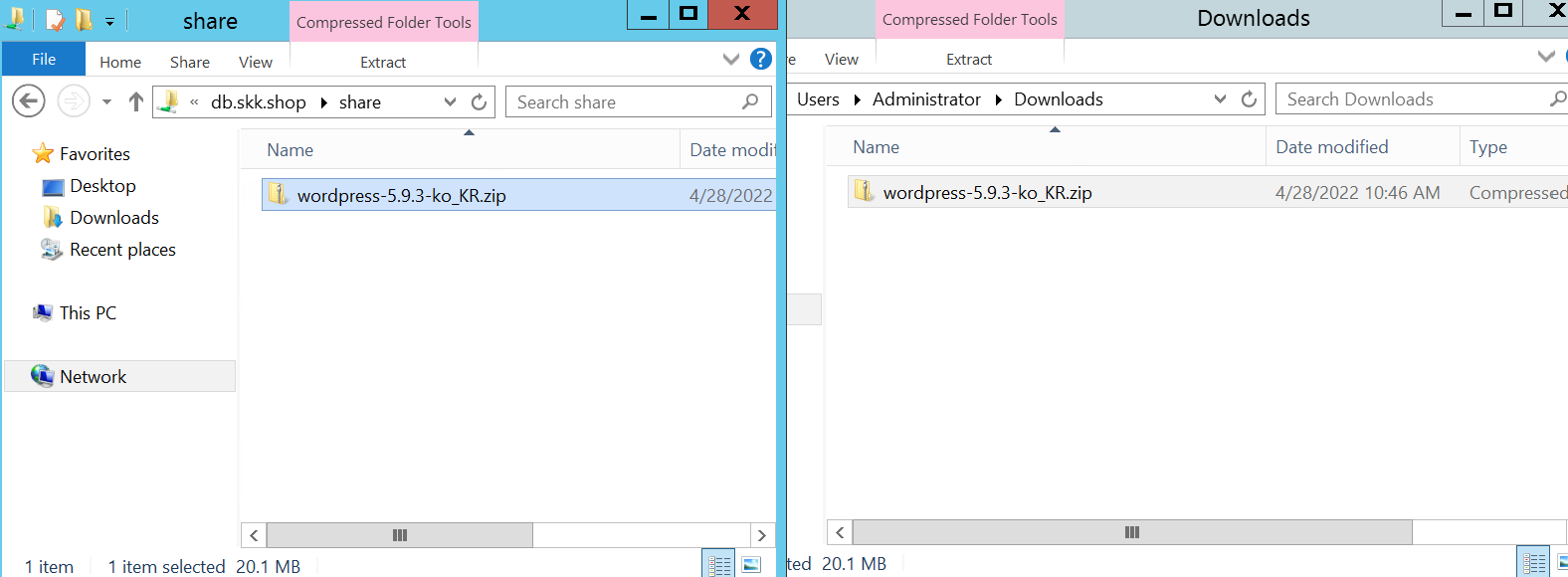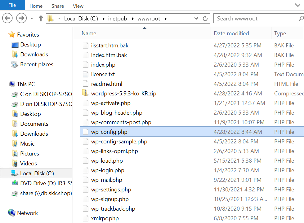 * wp-config.php파일을 윈도우 share폴더에서 wwwroot폴더에 복사