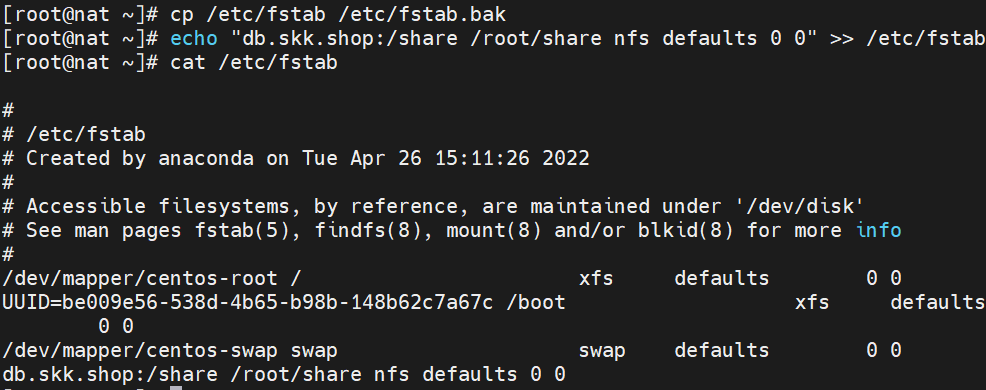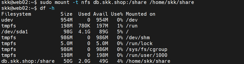 * 앞의 /share는 db서버에 설정해준 nfs의 share 폴더