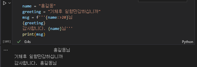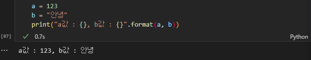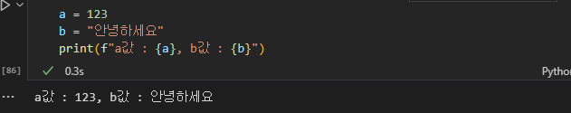 * f-string은 파이썬 3.6 이상 버전부터 사용 가능