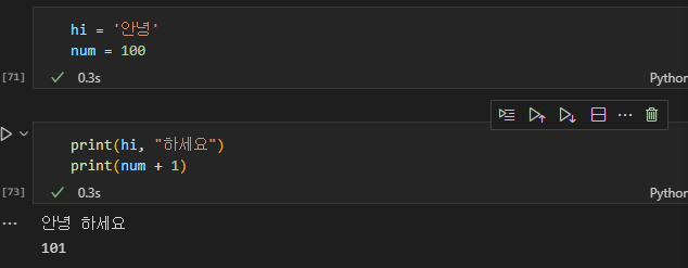 * Shift + enter는 해당 쉘을 실행하고 다음 쉘을 만들면서 커서가 넘어감