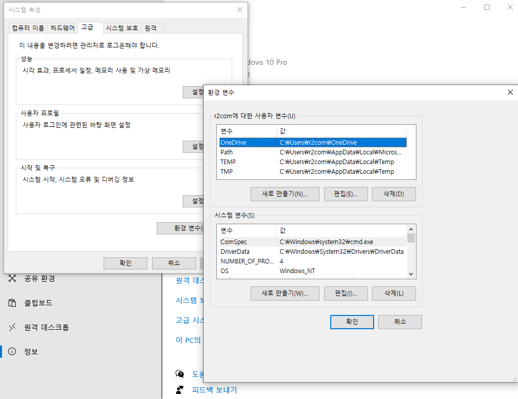 * 상단은 사용자 변수, 하단은 시스템 변수