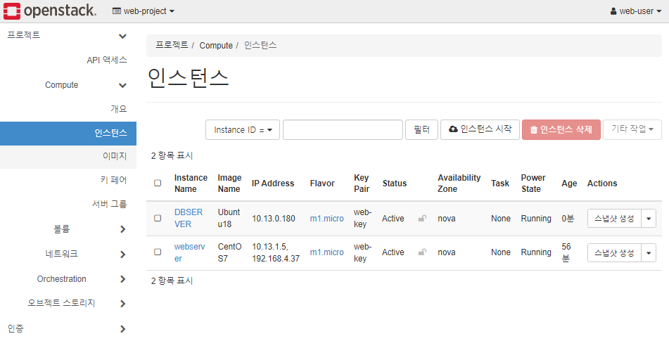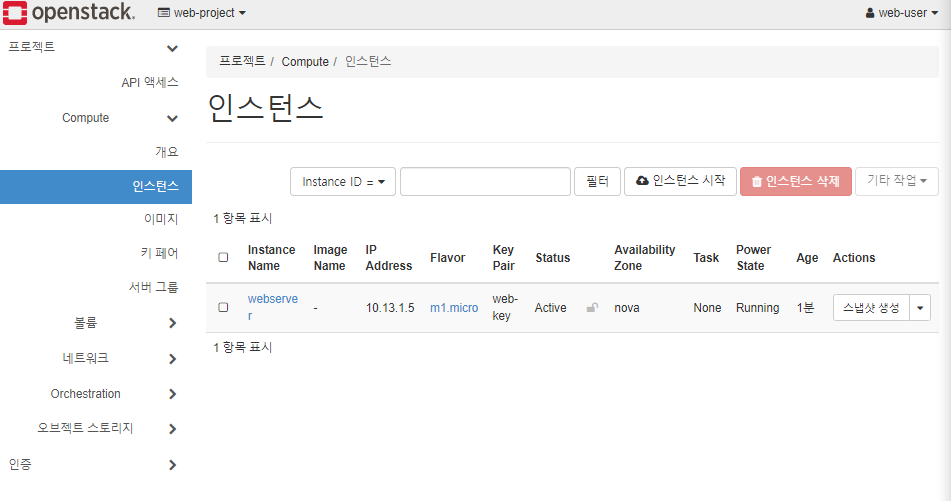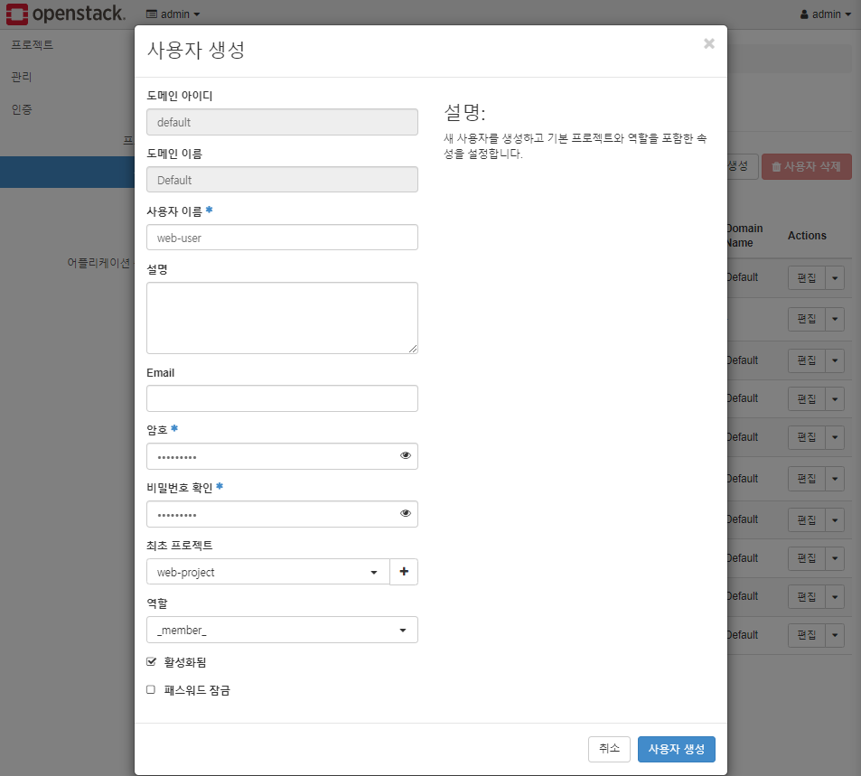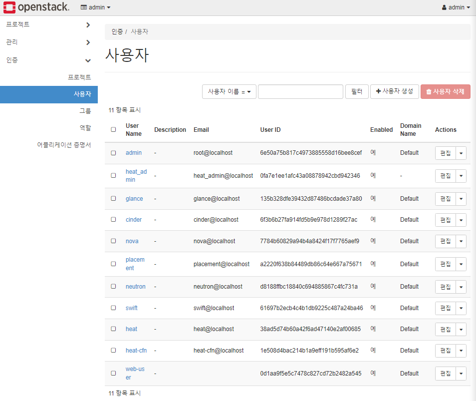 # 브라우저로 Openstack 접속