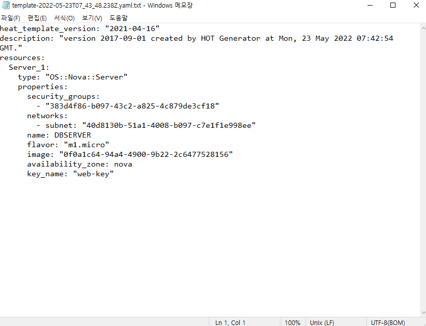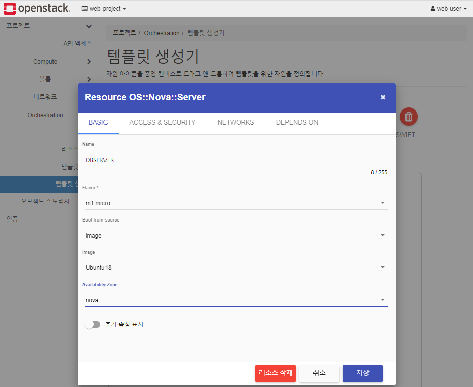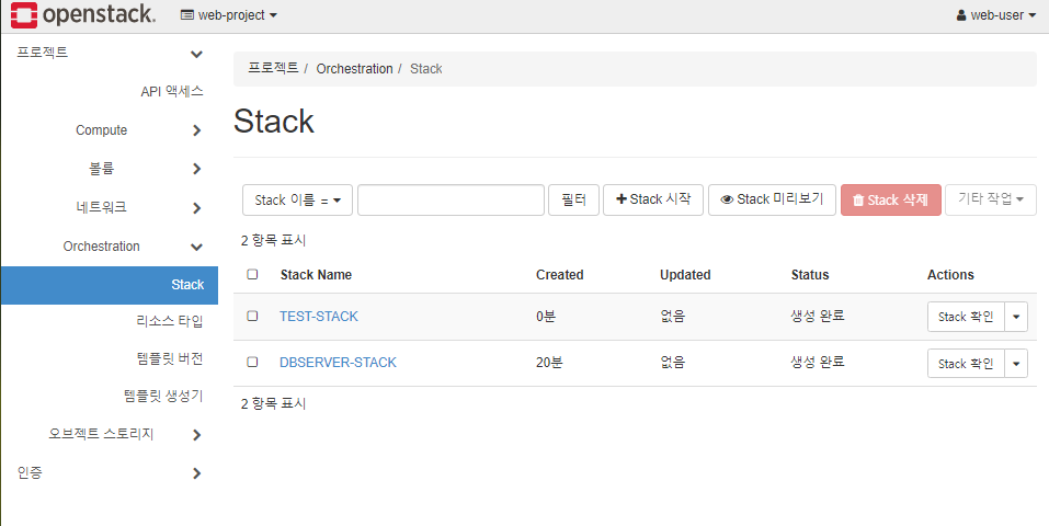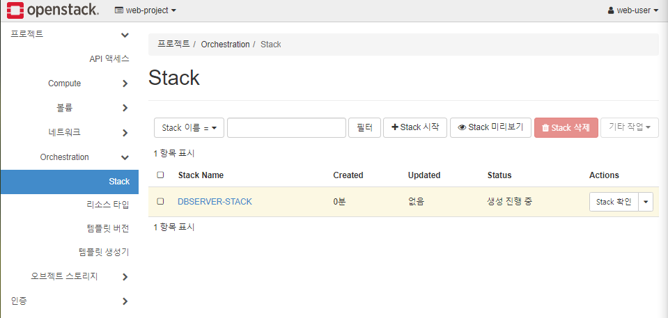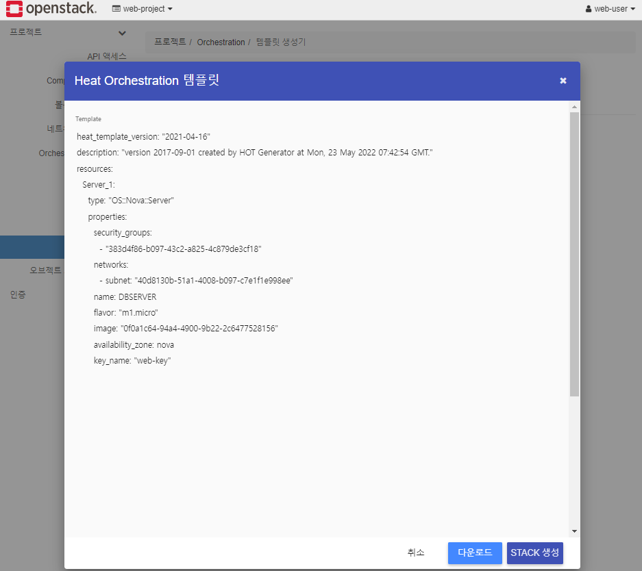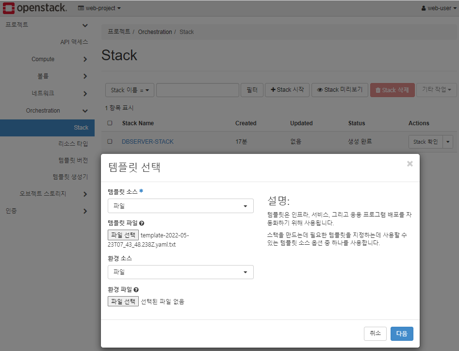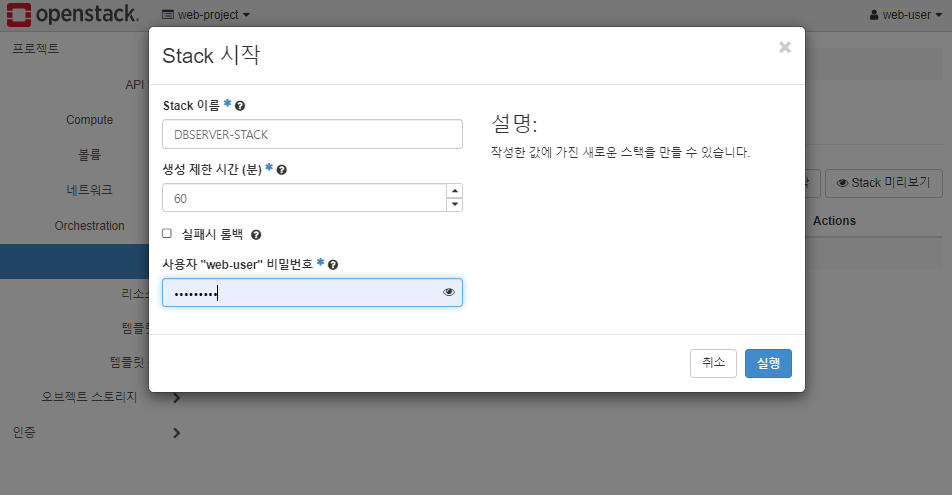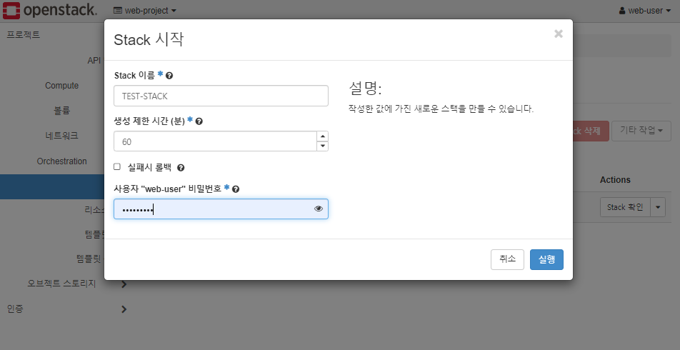 * STACK에 템플릿 파일을 적용하여 인스턴스 만들기