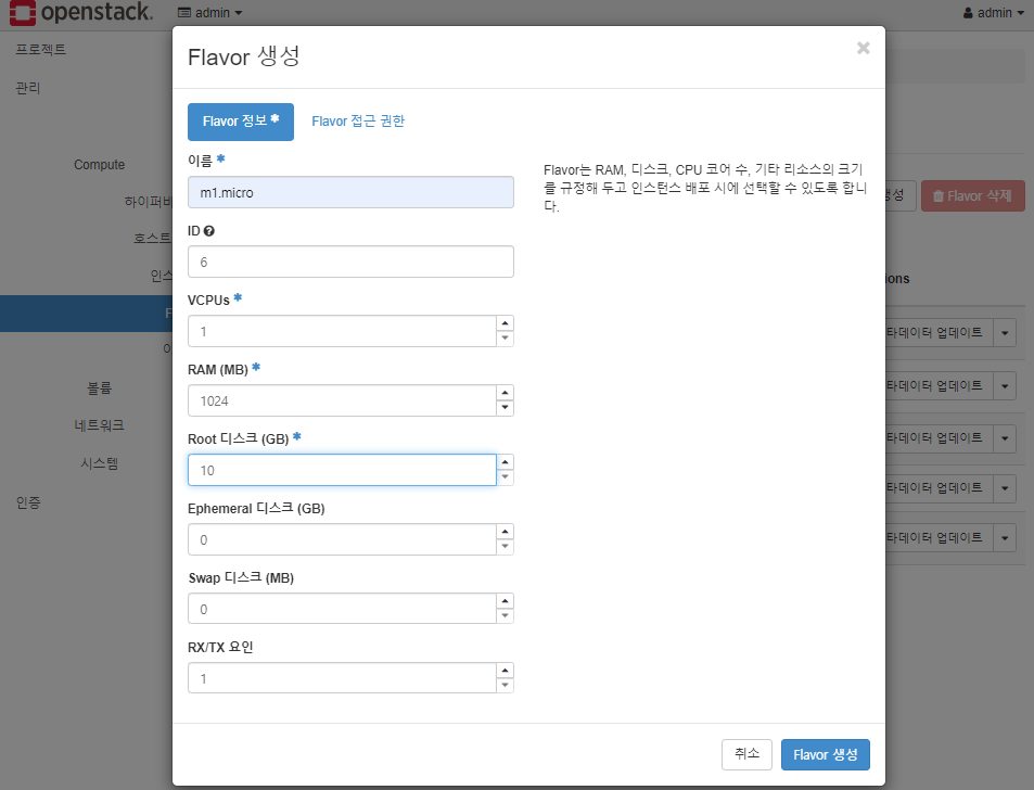 - Openstack VM 최소사양