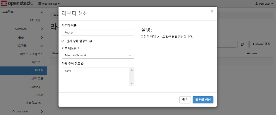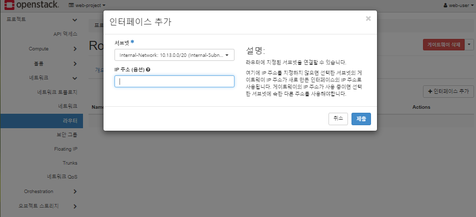 * 라우터의 인터페이스에 Internal-Subnet(Internal Network)을 추가하는 것