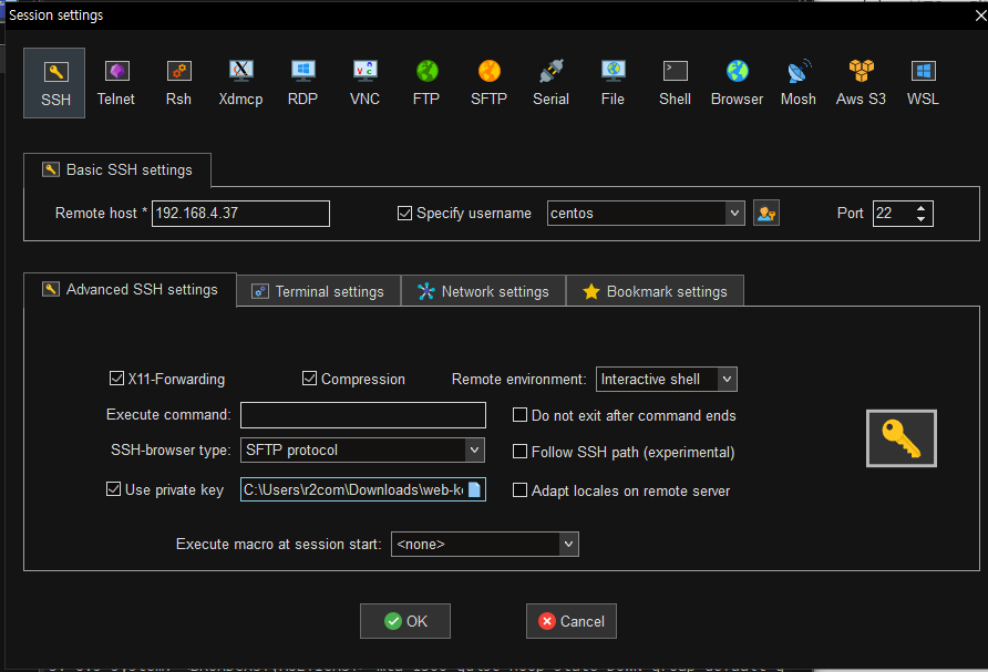 * mobaXterm에서의 ssh를 통한 접속을 허용하기 위해 22번 포트를 열어줌