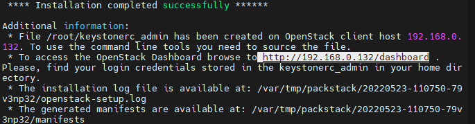 * packstack --answer-file /root/answers.txt -> 설치에 30분가량 소요