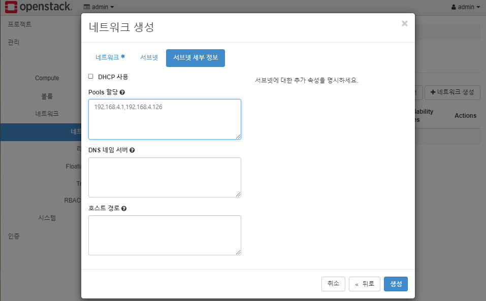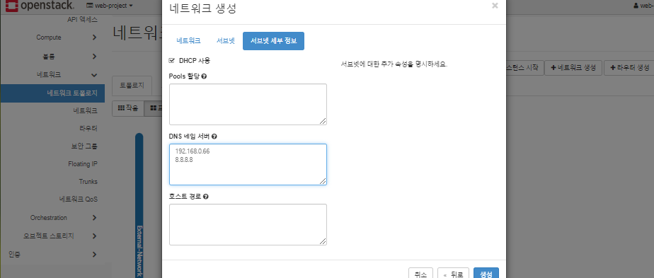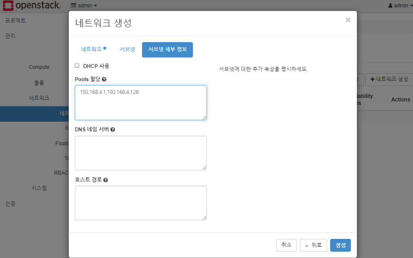 * 네트워크 이름은 CLI환경에서와 동일한 이름을 사용한 것