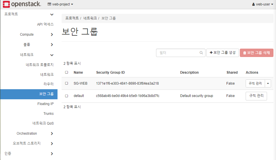 * 보안 그룹 생성 클릭