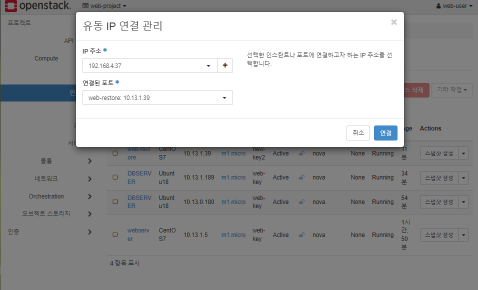 * web-restore가 구동되면 192.168.4.37 IP를 web-restore에 연결해줘야 함
