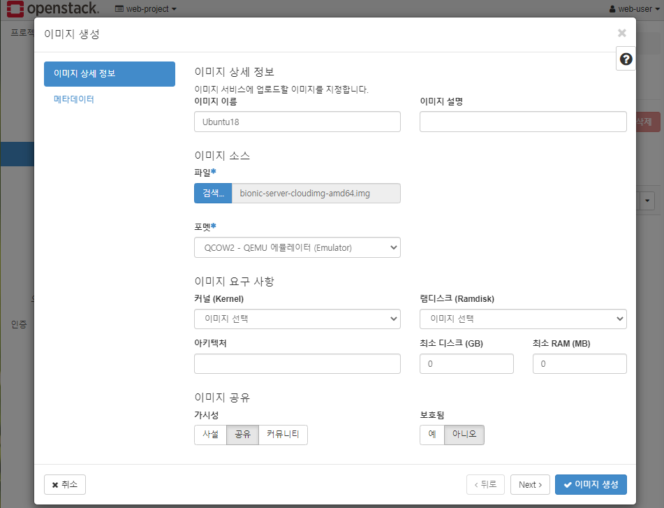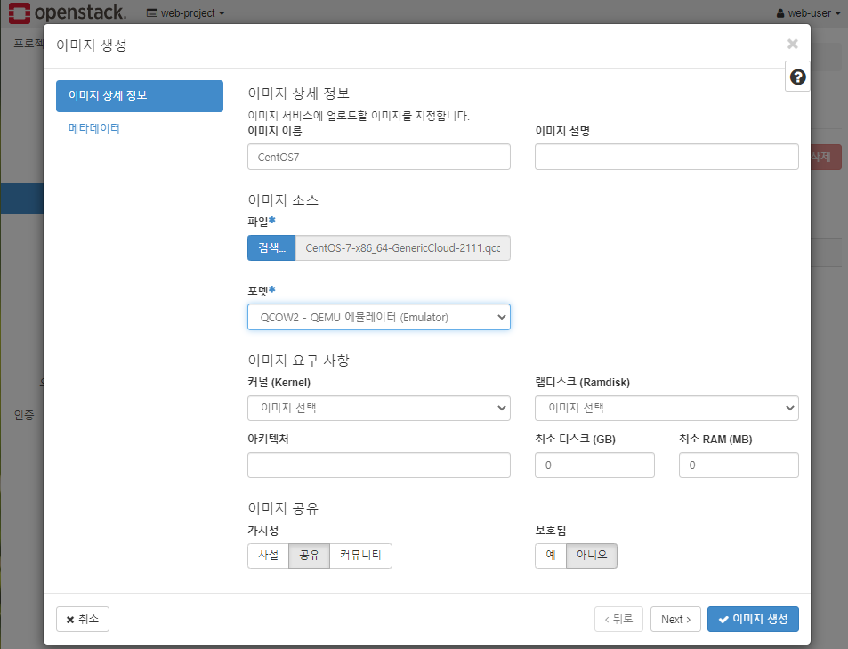 * QCOW2 파일로 이미지 포멧 설정 (QCOW2는 가상 머신 디스크의 이미지 저장 형식)