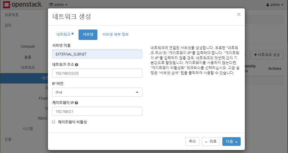 * External 네트워크를 만들기 위해 들어옴