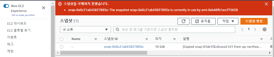* 따라서 스냅샷을 AMI보다 먼저 삭제할 수 없음