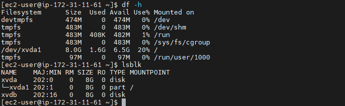 * xvdb가 df -h에서 없으니까 마운트가 안 된 상태