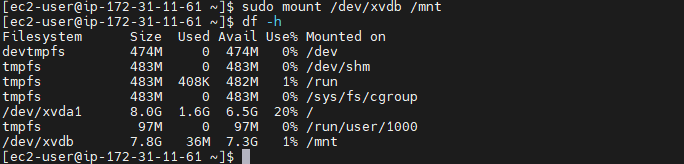 * /dev/xvdb 장치 파일을 mnt폴더에 마운트