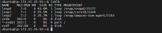 * 연결된 인스턴스에서 보면 xvda와 sdb를 볼 수 있음, a가 루트 볼륨