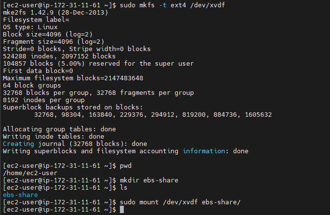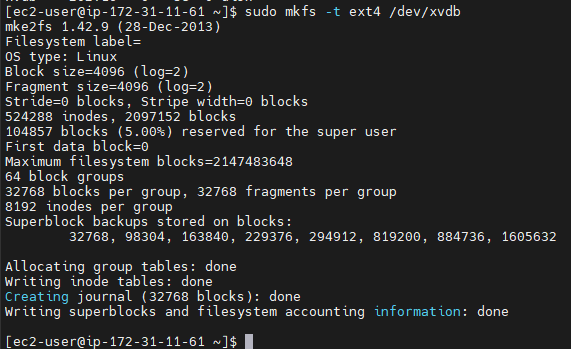 * xvdb 드라이버를 ext4 포맷으로 포맷