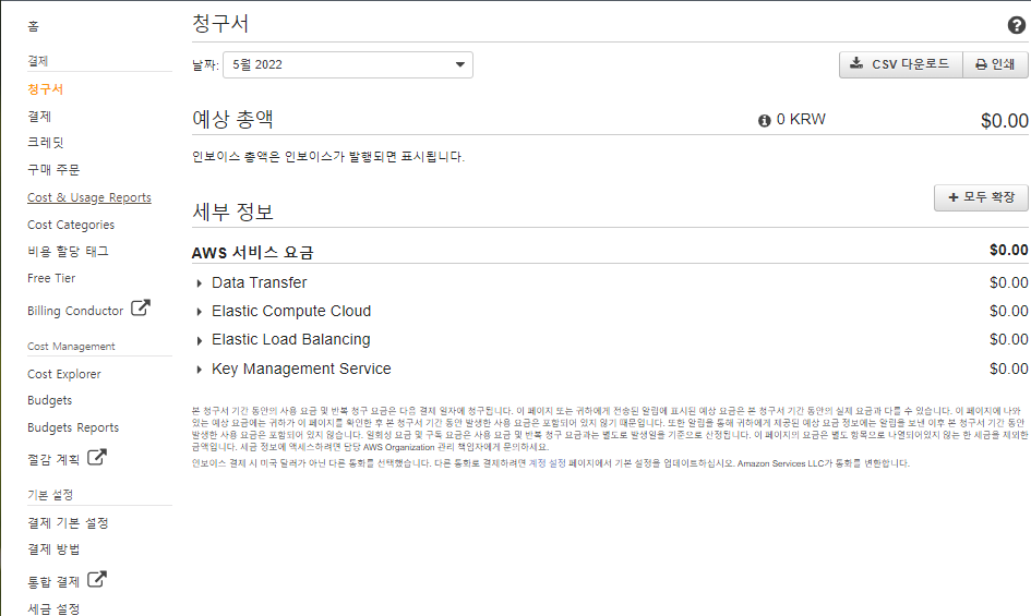 * Data Transfer : 트래픽에 대한 비용(나의 서버에서 아웃바운드 트래픽이 발생해도 나한테 비용이 청구됨)