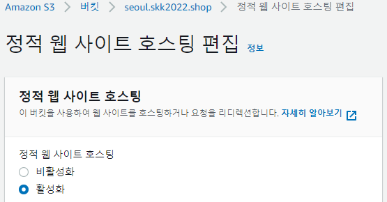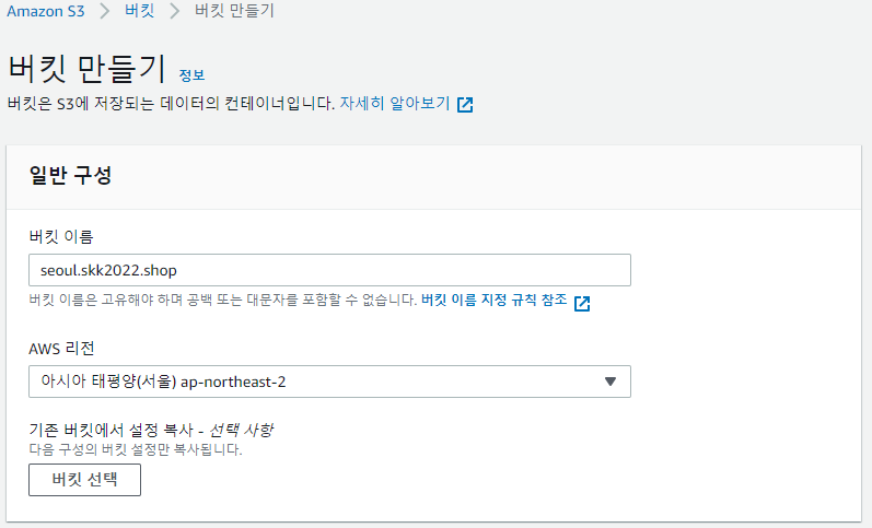 * 버킷의 이름은 나의 도메인으로 하는 것이 좋음