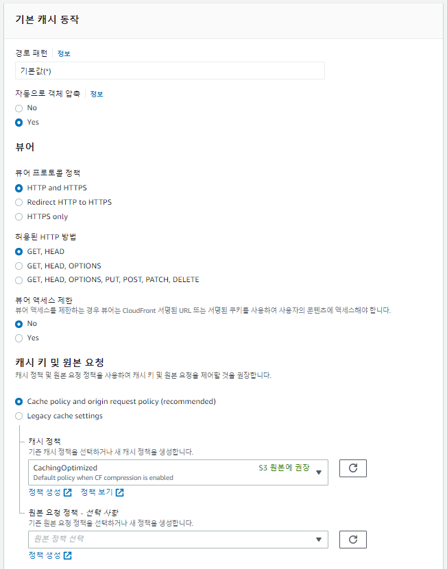 * 아래의 두 개 옵션만 체크해도 cloudfront 연동 가능