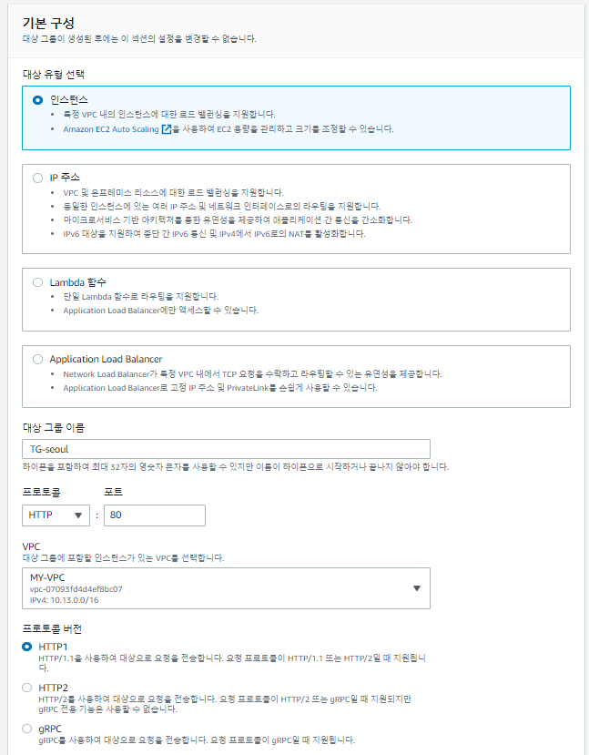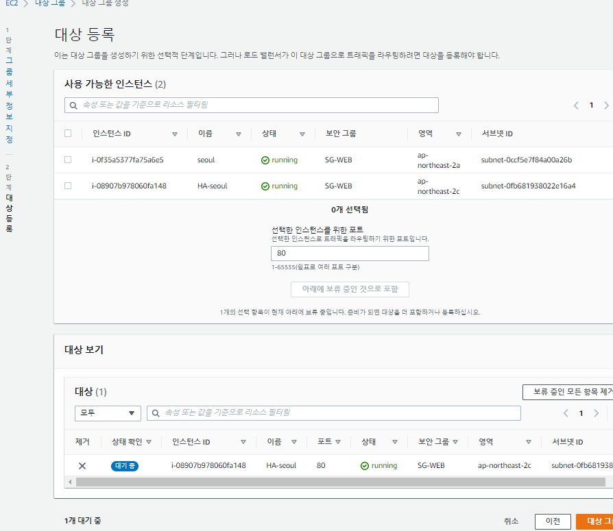 # 서울 리전에서 로드 밸런서 생성