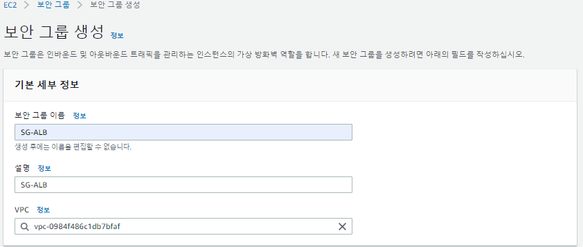 * SG를 소문자로 쓰게 되면 디폴트 보안 그룹과 충돌하니까 대문자로 쓰기