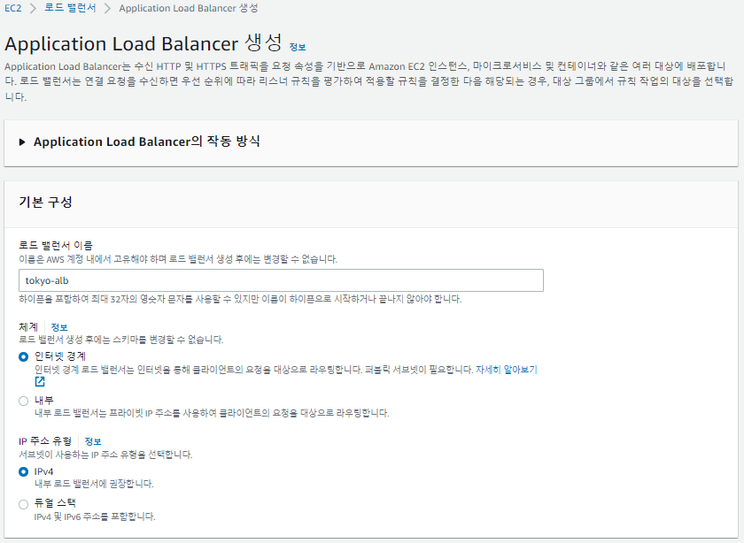 # 도쿄 리전에서 로드 밸런서 생성