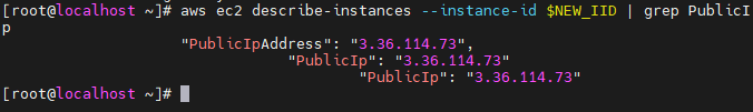 # aws ec2 describe-instances --instance-id $NEW_IID | grep PublicIp