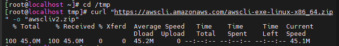 # curl "https://awscli.amazonaws.com/awscli-exe-linux-x86_64.zip" -o "awscliv2.zip"