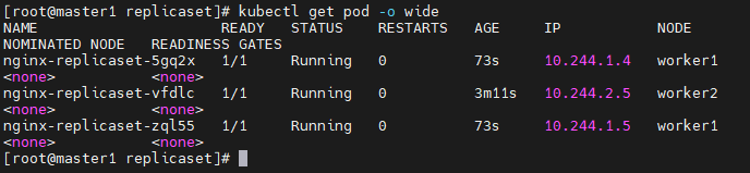 # kubectl apply -f replicaset.yaml # kubectl get replicasets.apps -o wide master노드에는 pod가 만들어지지 않은 이유 : 그렇게 스케쥴이 되어 있기 때문에 # kubectl describe replicasets.apps nginx-replicaset