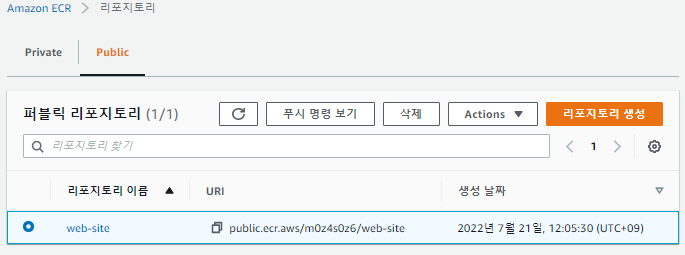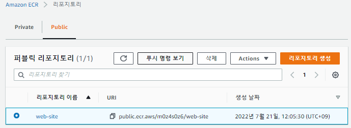 -- ECR(Elastic Container Registry) 생성