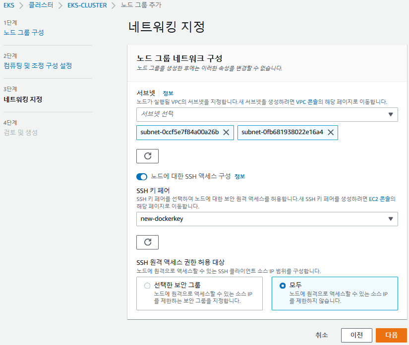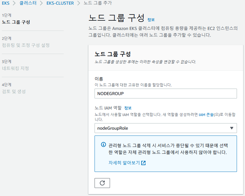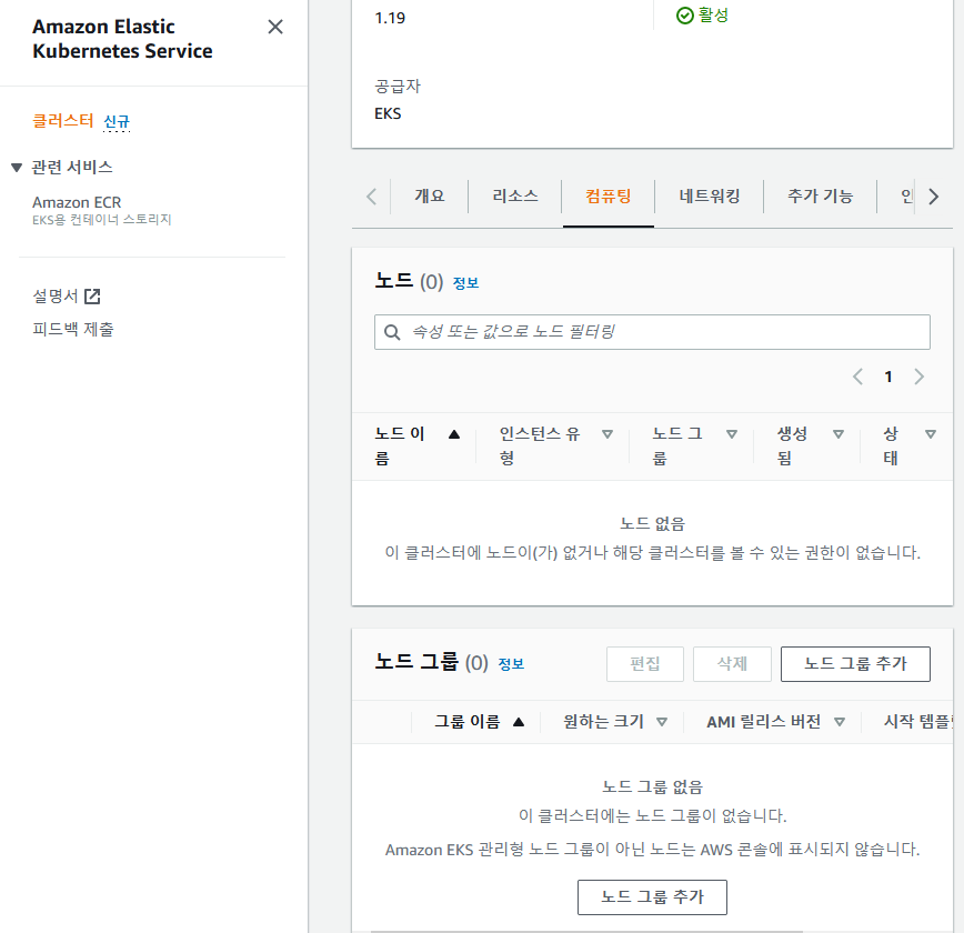 - 클러스터가 만들어지면 EC2로 워커 노드를 만들어야 함