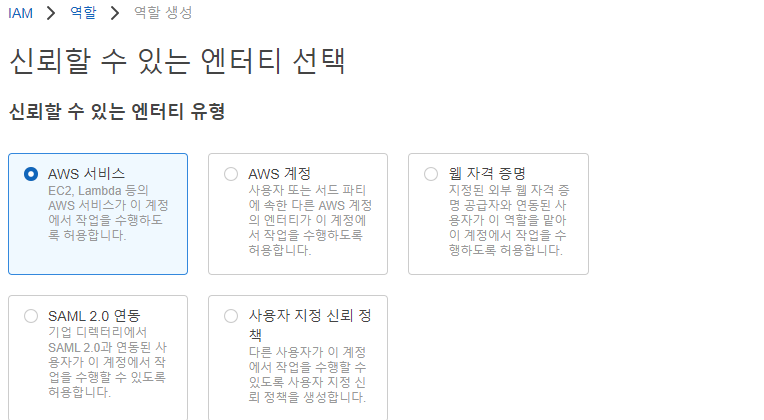 -- EKS의 컨트롤 플레인에서 사용할 역할(Role) 생성