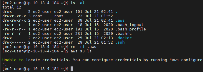 => EC2 자체에게 s3에 접근할 수 있는 역할(role)을 주면 aws configure가 필요 없음