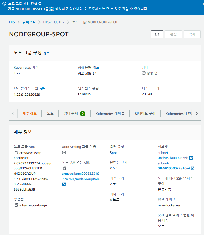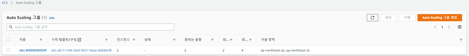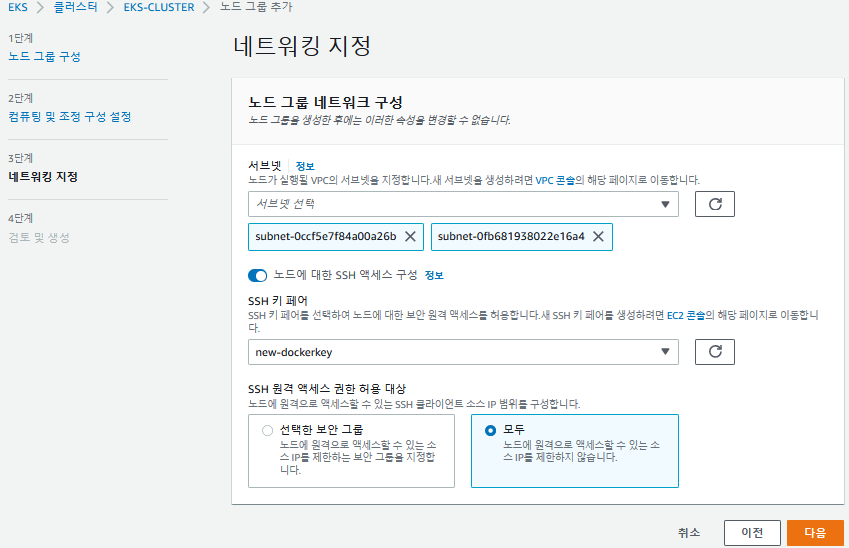 -- 노드 그룹 추가(워커 노드들이 위치할 곳)