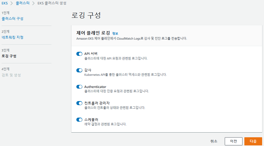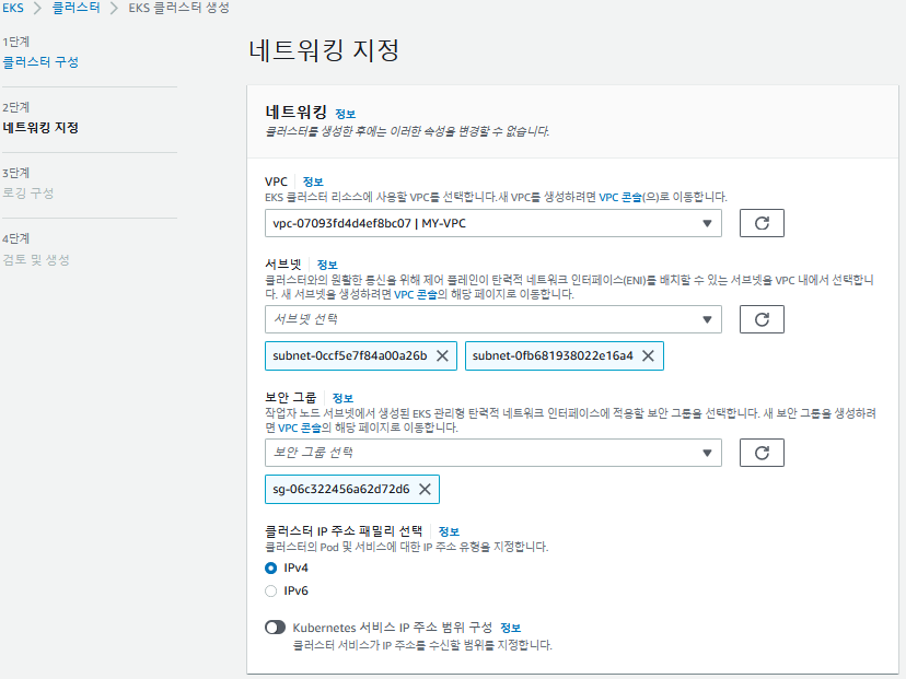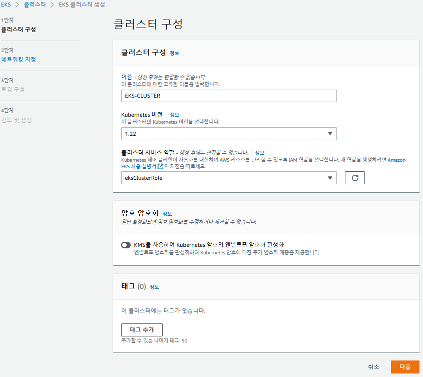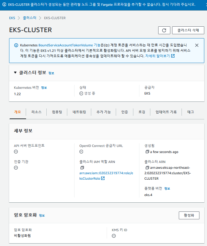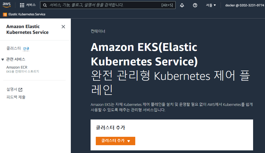 => EKS-CLUSTER는 클러스터 생성 시 임의로 정한 이름을 넣어줘야 함