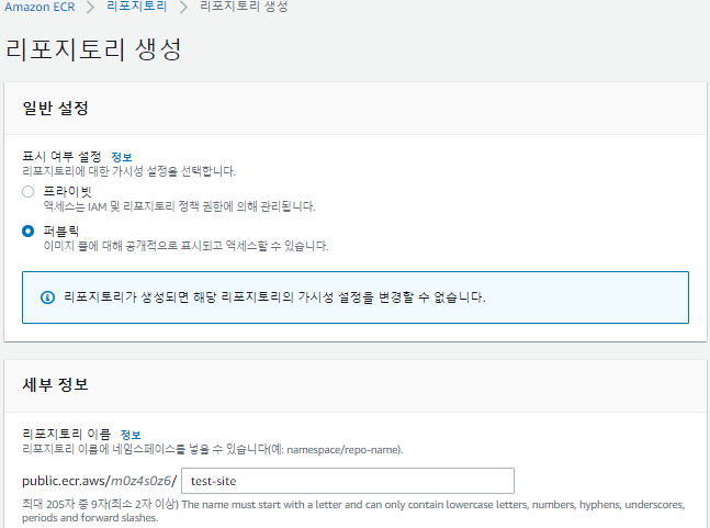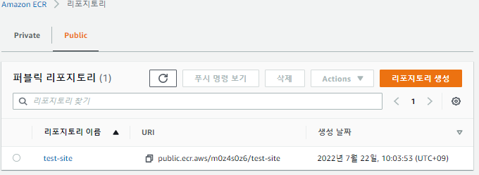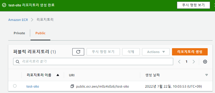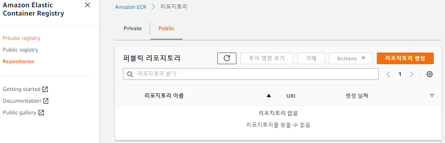 -- ECR 리포지토리 생성 후 레지스트리 만들기