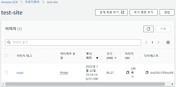 => 레지스트리에 리포지토리가 만들어져야만 그곳에 이미지를 push할 수 있음