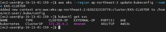 $ aws eks --region ap-northeast-2 update-kubeconfig --name EKS-CLUSTER